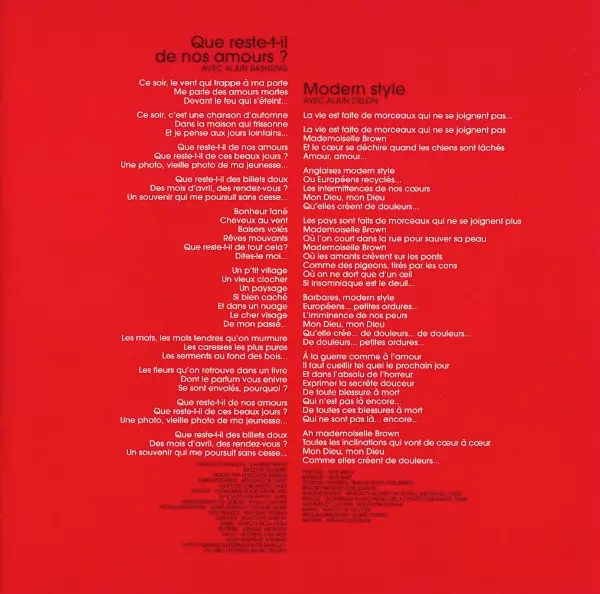 Bass Marco de Oliveira | Drums Arnaud Dieterlen | Featuring Alain Delon | Guitar, Keyboards Rodolphe Burger | Lyrics By Yves Sarda | Music By Jean Bart | Programmed By Lionel Pierres