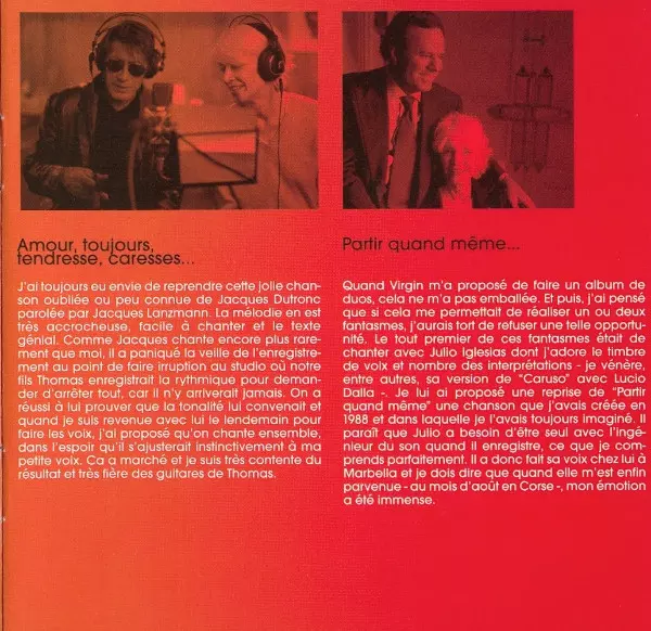 Acoustic Guitar [Solo] Thomas Dutronc | Drums Arnaud Dieterlen | Featuring Julio Iglesias | Guitar Gildas Arzel | Lyrics By Françoise Hardy | Music By Jacques Dutronc | Programmed By, Arranged By, Keyboards, Guitar Erick Benzi