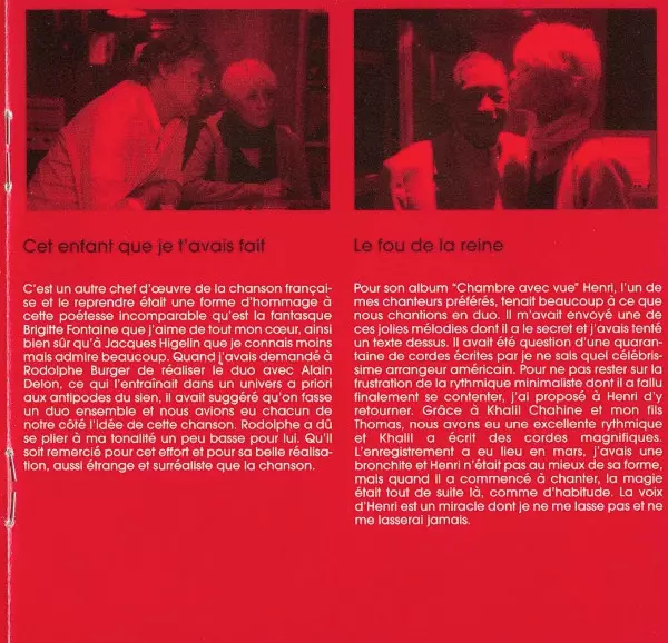 Arranged By [Strings] Khalil Chahine | Bass Marco de Oliveira | Cello Mathilde Sternat | Drums Arnaud Dieterlen | Featuring Alain Bashung | Guitar Rodolphe Burger | Piano Séverine Chavrier | Programmed By Celmar Engel | Written-By Charles Trenet
