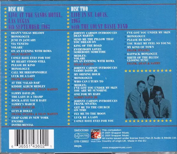 | Artiste | Frank Sinatra | Dean Martin | Sammy Davis Jr. |