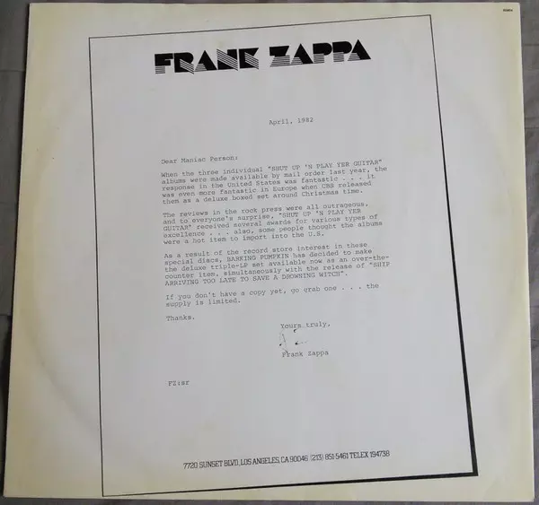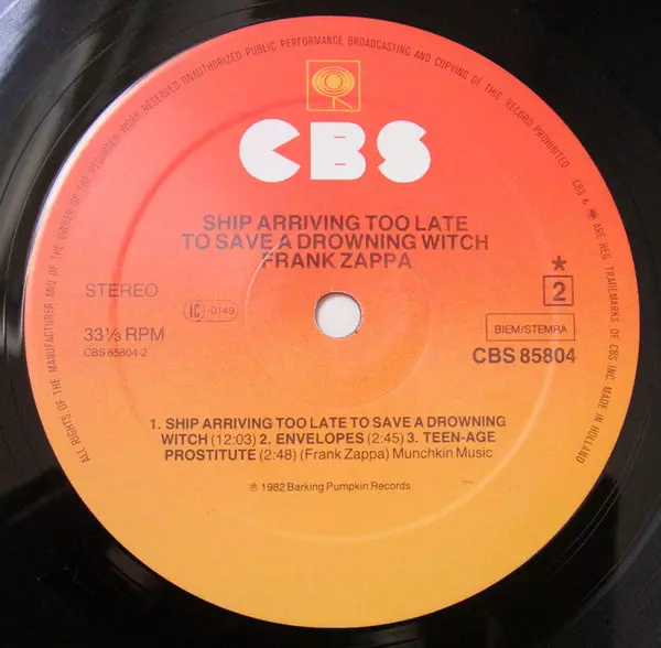 | Maisons d'édition | CBS | Barking Pumpkin Records |