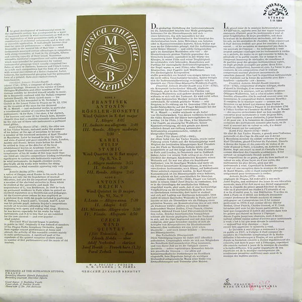 | Artiste | Anton Reicha | Carl Stamitz | František Antonín Rössler | Czech Wind Quintet |