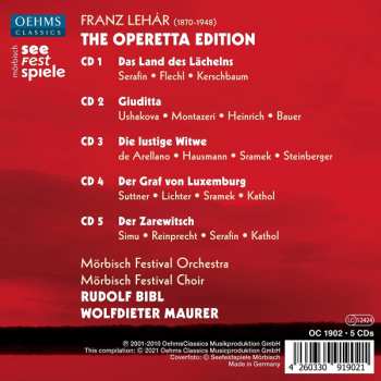 Franz Lehár: The Operetta Edition La version sur 5CD en Norme édition. Cette édition particulière a été publiée en L'Europe dans la maison d'édition Oehms Classics Le 2 juillet 2021. Album couvre tous les genres Musique classique, Romance, Opéra et Operetta. Mörbisch Festival.