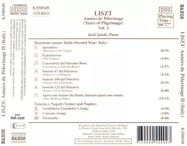 | Artiste | Franz Liszt | Jenö Jandó |