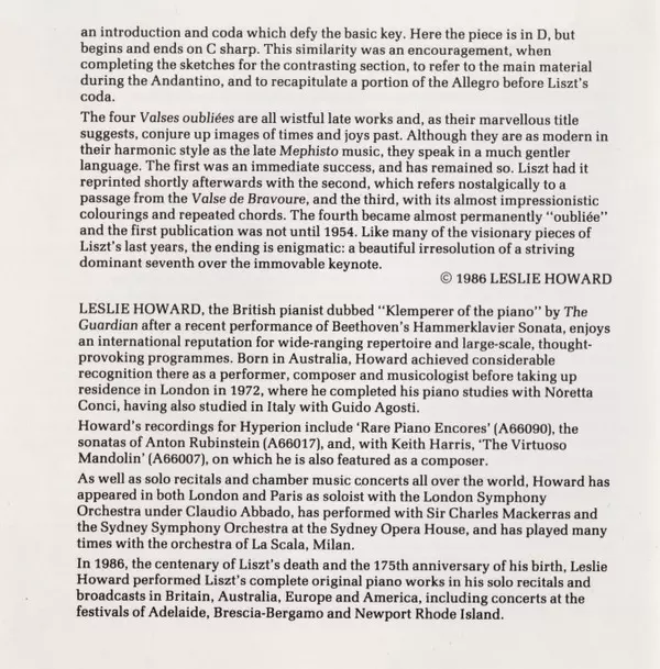 | Artiste | Franz Liszt | Leslie Howard |