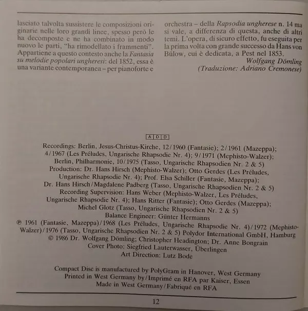 | Artiste | Berliner Philharmoniker | Herbert von Karajan | Franz Liszt |