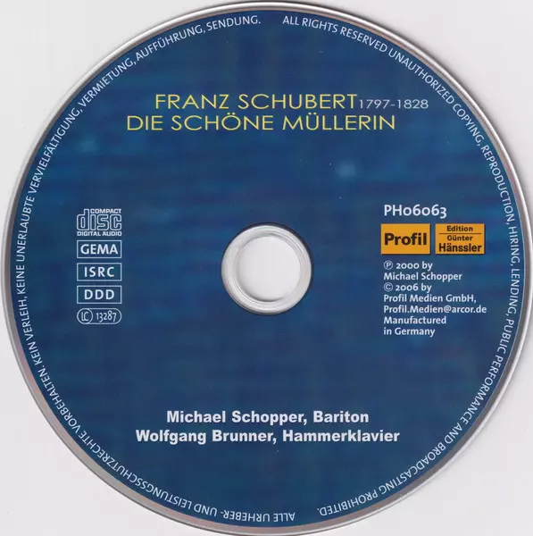 | Artiste | Franz Schubert | Wolfgang Brunner | Michael Schopper |