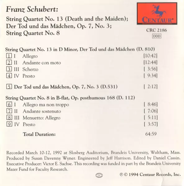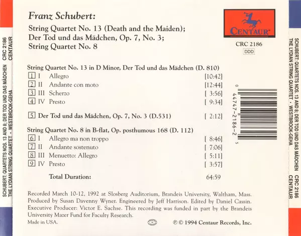 | Titre | Quartets Nos. 13 And 8; Der Tod Und Das Mädchen |