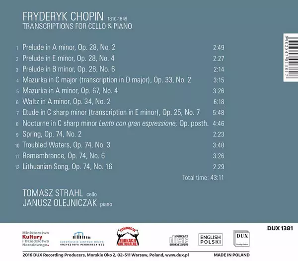 | Artiste | Frédéric Chopin | Janusz Olejniczak | Tomasz Strahl |