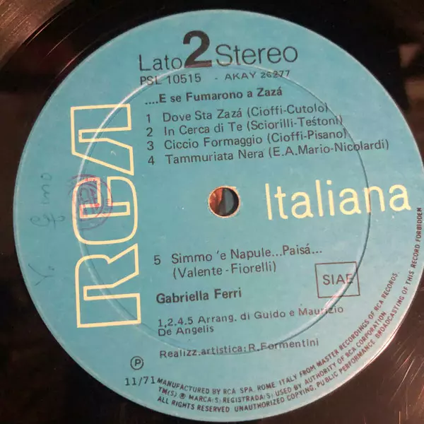 | Maisons d'édition | RCA Italiana |