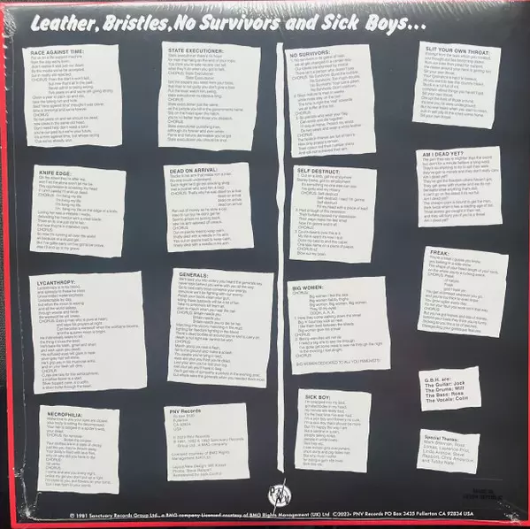 | Titre | Leather, Bristles, No Survivors And Sick Boys... |