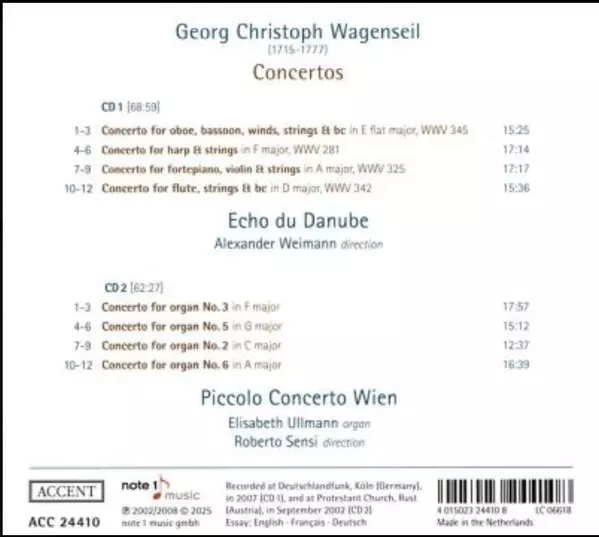 | Artiste | Georg Christoph Wagenseil | Echo Du Danube | Piccolo Concerto Wien |