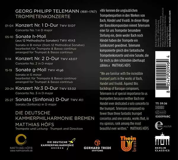 Artiste | Georg Philipp Telemann | Deutsche Kammerphilharmonie Bremen | Matthias Höfs |
