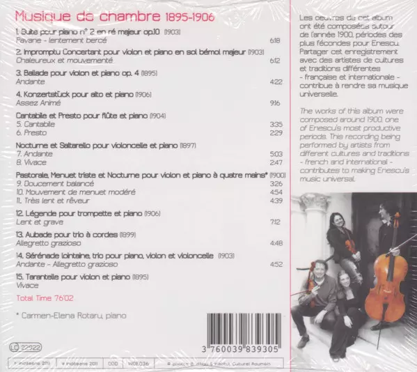 | Artiste | George Enescu | Gérard Caussé | Justus Grimm | Tatiana Samouil | Vincent Lucas | Frédéric Mellardi | Claudia Bara |