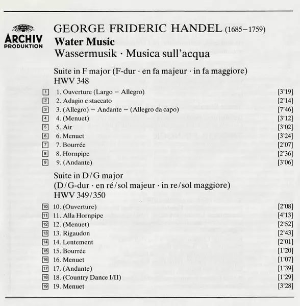 | Suite In D/G Major HWV 349/350 |