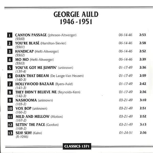 | 12 | Georgie Auld And His Orchestra: Settin' The Pace | 3:13 min | |