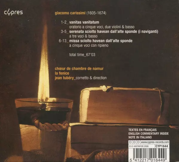 | Artiste | Choeur de Chambre de Namur | Ensemble La Fenice | Jean Tubéry | Giacomo Carissimi |