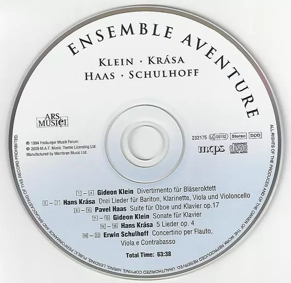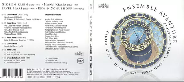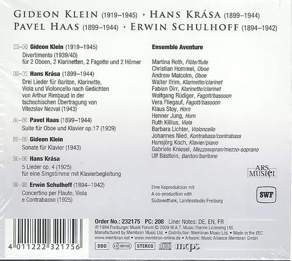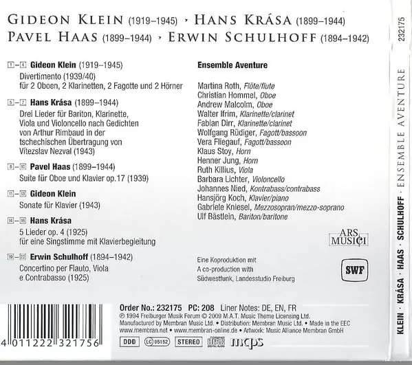 | Artiste | Erwin Schulhoff | Pavel Haas | Hans Krása | Gideon Klein | Ensemble Aventure |