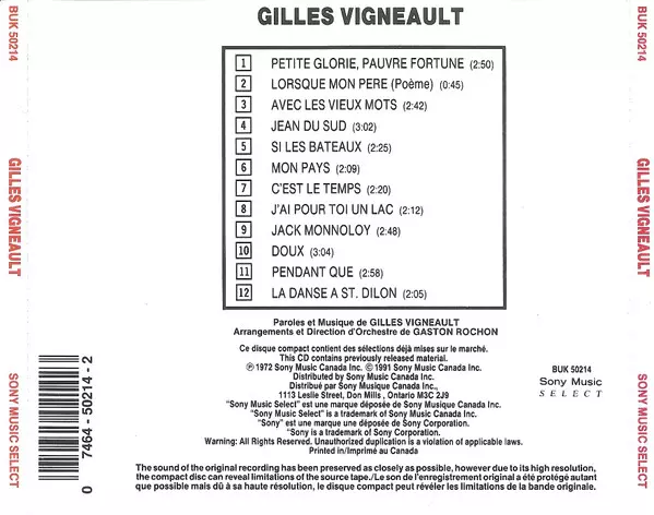 | Artiste | Gilles Vigneault |