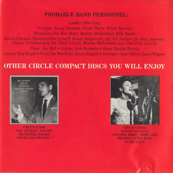 Glen Gray & The Casa Loma Orchestra: Mostly 1939 La version sur CD en Remasterisé édition. Cette édition particulière a été publiée en ÉTATS-UNIS dans la maison d'édition Circle Le 11 août 1994. Album couvre tous les genres Jazz et Big Band.