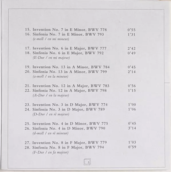 | Titre | Bach: The Two And Three Part Inventions |