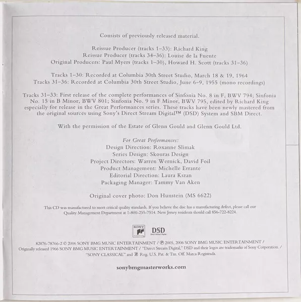 | Artiste | Johann Sebastian Bach | Glenn Gould |