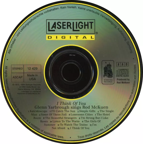 | Titre | I Think Of You - Glenn Yarbrough Sings Rod McKuen |