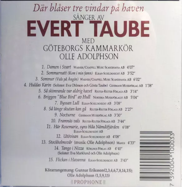 | Titre | Där Blåser Tre Vindar På Haven - Göteborgs Kammarkör Och Olle Adolphson Sjunger Evert Taube |