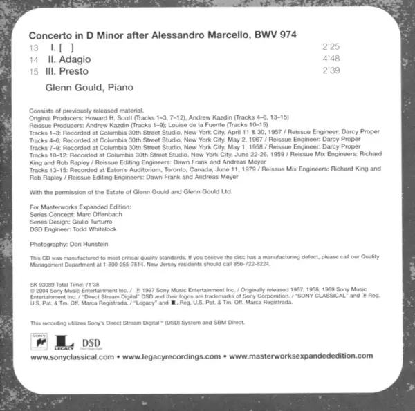 | Concerto No. 1 In D Minor For Piano And Orchestra, BWV 1052 | ||
