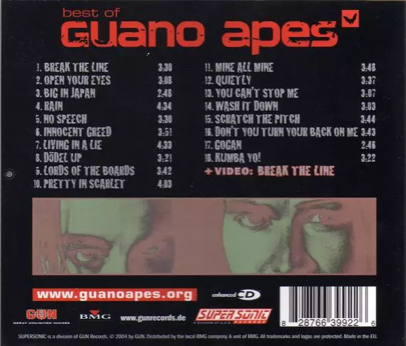 Album Best Of obsahuje všechny hity Guano Apes: "Open your eyes", "Lords of the boards", "Big in Japan" a "Kumba yo" až po poslední pecky "You can't stop me" a "No speech". Nechybí ani 3 bonusové skladby, které byly speciálně nahrány.