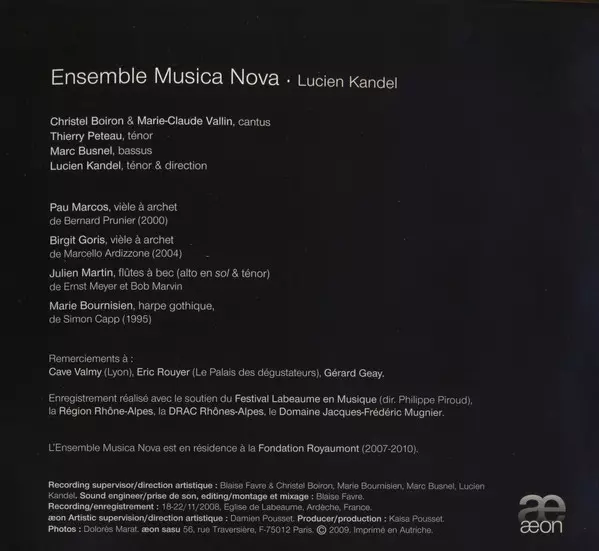 Artiste | Guillaume de Machaut | Ensemble Musica Nova | Lucien Kandel |