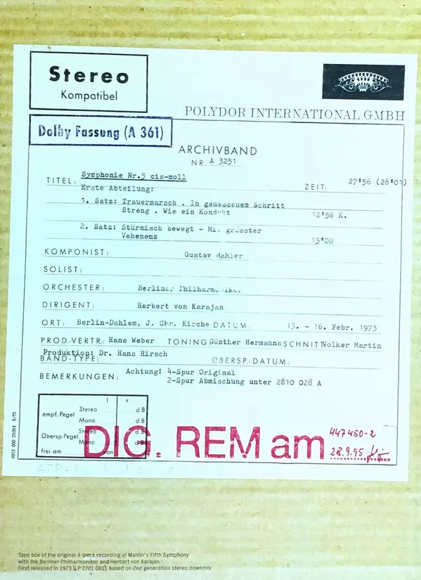 | Artiste | Berliner Philharmoniker | Herbert von Karajan | Gustav Mahler | Christa Ludwig |