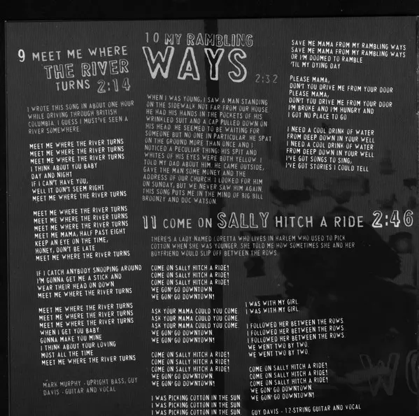 Double Bass [Upright] Mark Murphy (4) | Guitar, Vocals Guy Davis (3) | Words By, Music By Guy Davis (3)