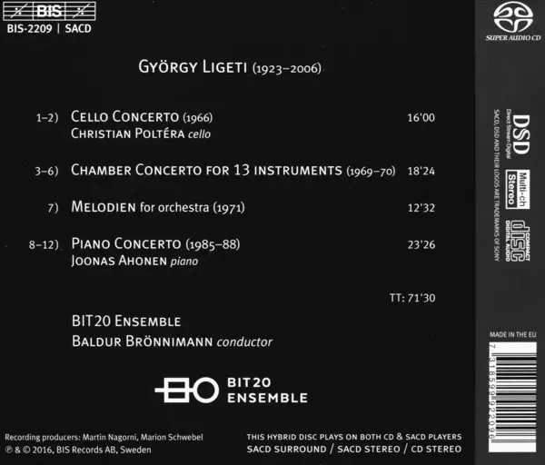 | Artiste | György Ligeti | Christian Poltéra | Joonas Ahonen | Bit 20 Ensemble | Baldur Brönnimann |