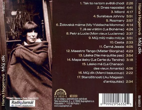 Hana Hegerová: Můj Dík (Hana Hegerová Zpívá Písně Pavla Kopty) La version sur CD en Norme édition. Cette édition particulière a été publiée en République tchèque dans la maison d'édition Supraphon Le 26 septembre 2005.