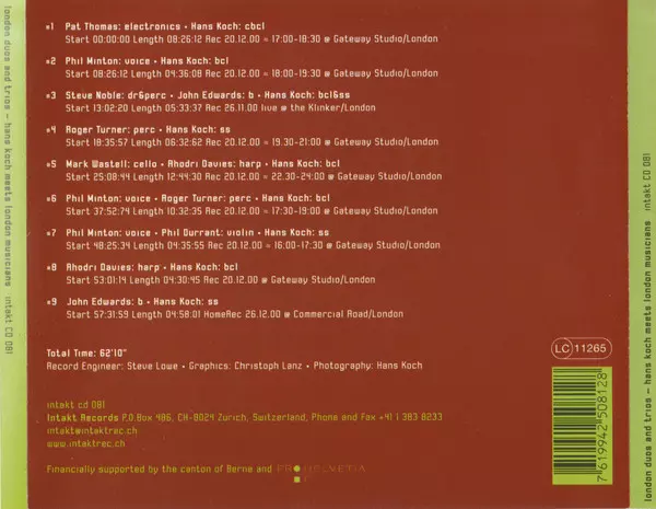 Titre | London Duos And Trios (Hans Koch Meets London Musicians) |