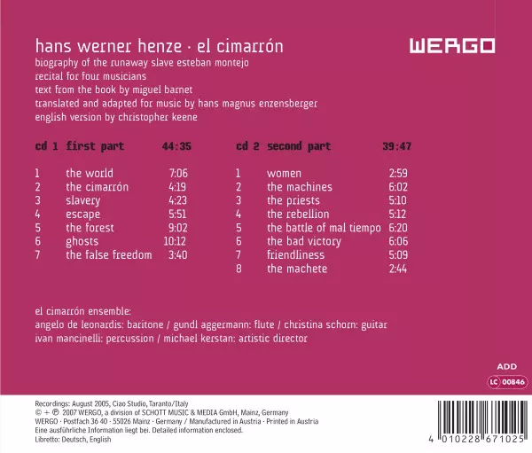 | Artiste | Hans Werner Henze | El Cimarrón Ensemble |