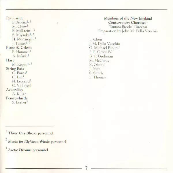 | Titre | Three City Blocks / Music For Eighteen Winds / Arctic Dreams |