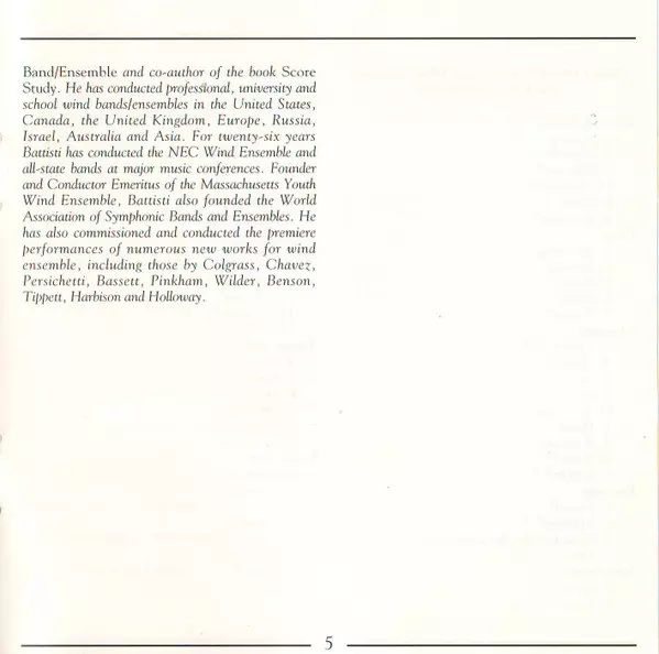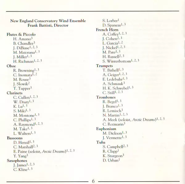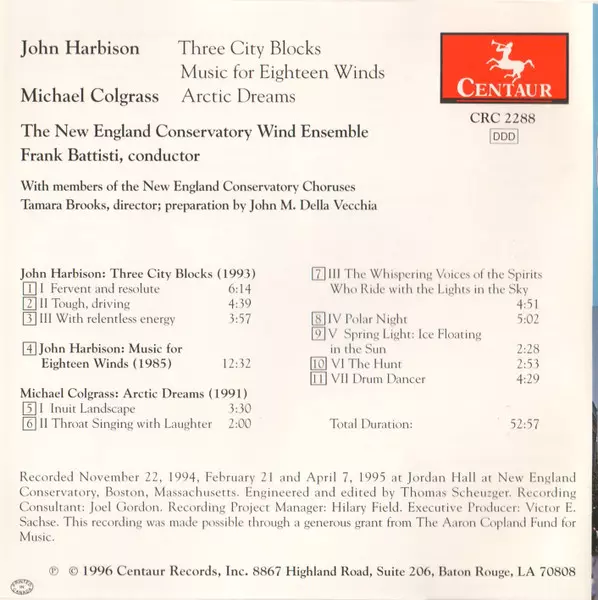 | Artiste | John Harbison | Michael Colgrass | New England Conservatory Wind Ensemble | Frank L. Battisti |