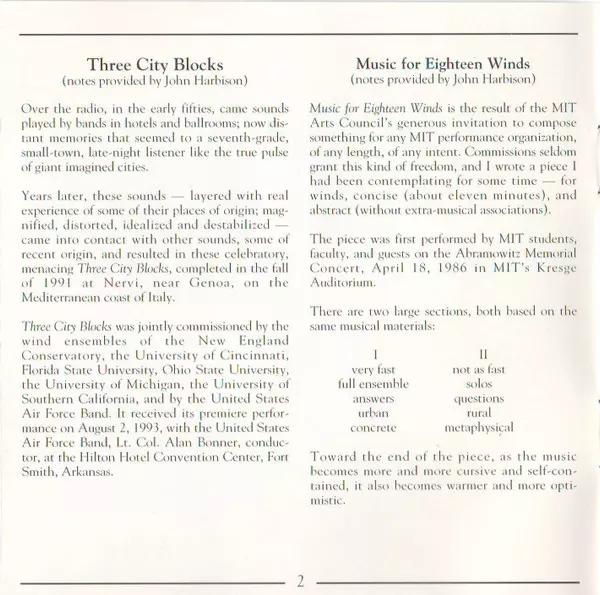 | John Harbison: Three City Blocks | |||