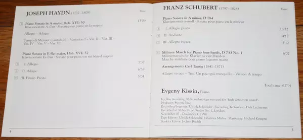 | Artiste | Joseph Haydn | Franz Schubert | Yevgeny Kissin |