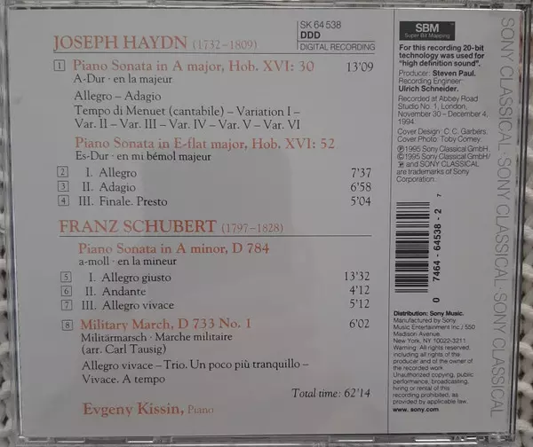 | Titre | Sonata In A Major, Hob. XVI: 30 / Sonata In E-Flat Major, Hob. XVI: 52 / Sonata In A Minor, D 784 / Military March (Tausig) |