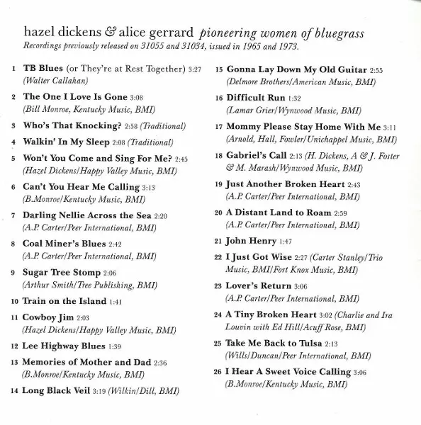 | Artiste | Hazel Dickens And Alice Gerrard |