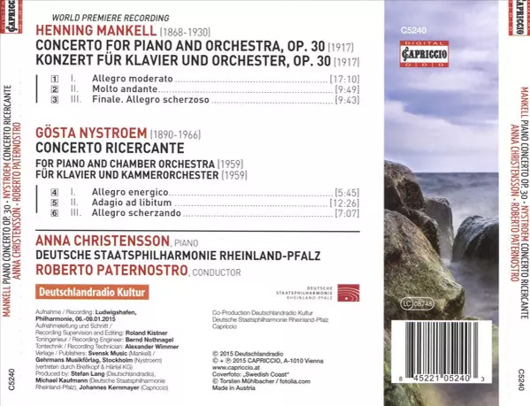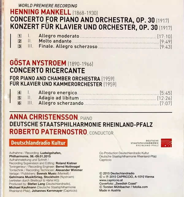 | Artiste | Staatsphilharmonie Rheinland-Pfalz | Roberto Paternostro | Gösta Nystroem | Anna Christensson | Henning Mankell |