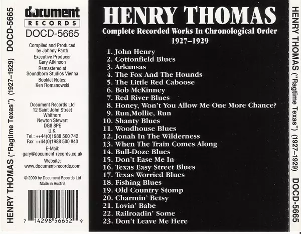 | Titre | "Ragtime Texas" - Complete Recorded Works In Chronological Order (1927-1929) |