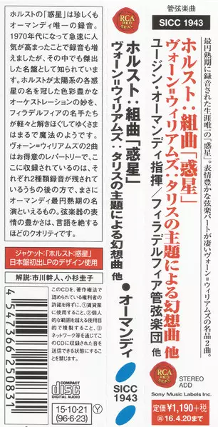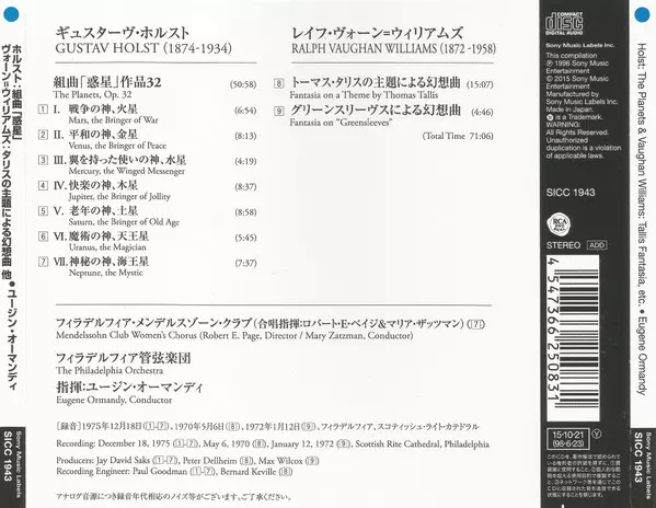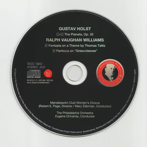 | Artiste | The Philadelphia Orchestra | Eugene Ormandy | Gustav Holst |