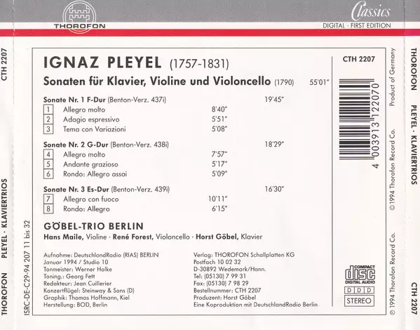 | Artiste | Ignaz Pleyel | Göbel-Trio Berlin |
