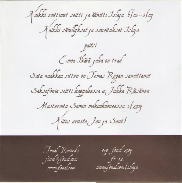 | Artiste | Islaja |