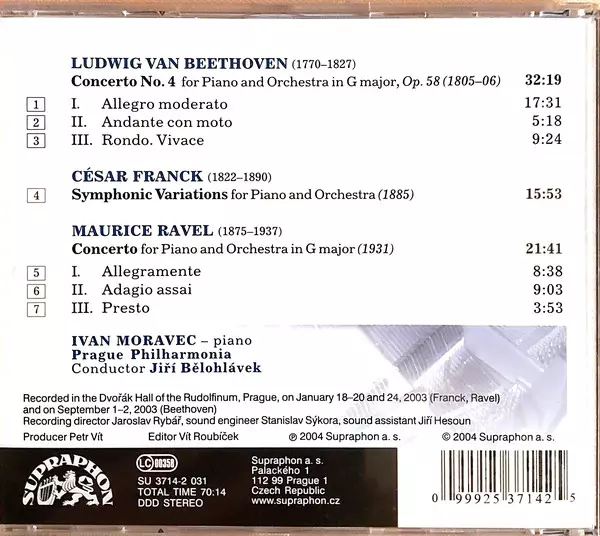 | Artiste | Ludwig van Beethoven | Maurice Ravel | Jiří Bělohlávek | Ivan Moravec | César Franck | Prague Philharmonic Orchestra |