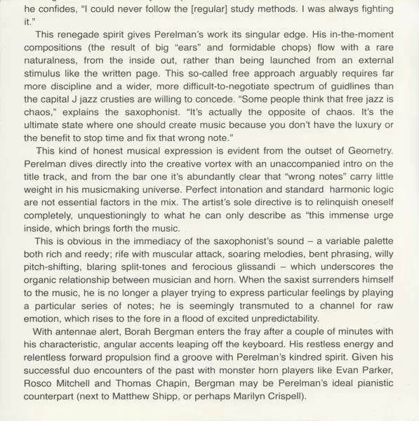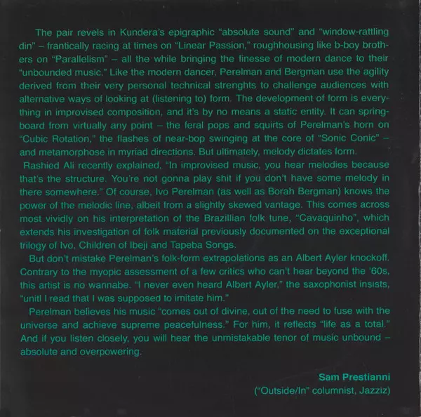 | Artiste | Borah Bergman | Ivo Perelman Duo |